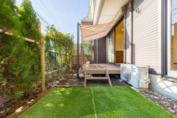 | その他 | 室内洗濯機置場 / 埋込型ガスコンセント(リビング)/ 調光ダウンライト / 全居室フローリング / 室内物干し竿 / バルコニー / テラス / 日除けシェード / 専用庭(水道あり)/ 外水栓 / 外電源(1Fテラス) / 玄関ホール / 通風良好 / 陽当り良好 / 出窓 | ||||